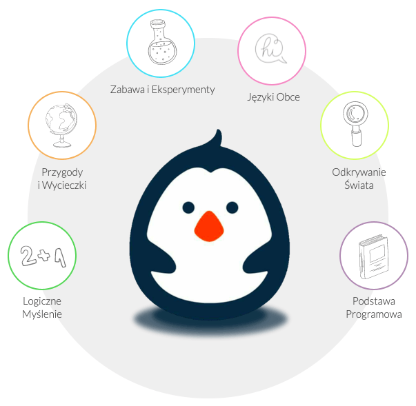 Dzieci są szczęśliwe, gdy mogą swobodnie odkrywać świat - na swoich zasadach i w swoim tempie. Dlatego właśnie powstał Pingwinek. Jako dorośli wkładamy całe nasze serca we wszystkie zajęcia, które prowadzimy. Jesteśmy dla dzieci przewodnikami i dorosłymi towarzyszami zabaw. Umiemy słuchać, odpowiadać na pytania i rozmawiać o emocjach. Wspieramy zarówno mentalny, jak i emocjonalny rozwój naszych podopiecznych. Głęboko wierzymy w to co potwierdza neurodydaktyka - dzieci uczą się najwięcej poprzez zabawę pełną emocji i ekscytujących doświadczeń.